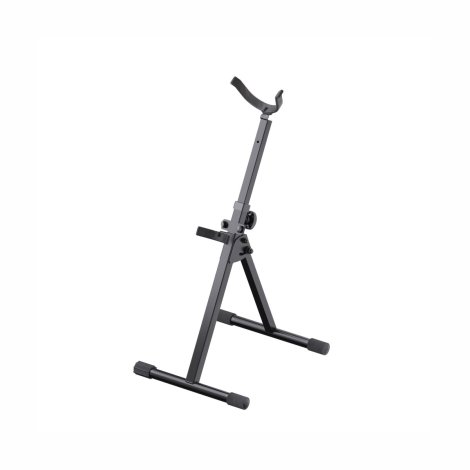 Rendkívül stabil összecsukható állvány súlyos basszusszaxofonok számára. A különböző beállítási lehetőségeknek köszönhetően az állvány a legkülönbözőbb méretek és modellek számára alkalmas. A két gumírozott tartóelem közötti távolság például 70 és 880 mm között választható. A tartós porszórással ellátott, masszív acélszerkezet könnyen kezelhető, ezért kiválóan alkalmas próbateremben, stúdióban vagy mobil alkalmazásban. A lábak állítható végzáró sapkája a billegésmentes használatot biztosít.